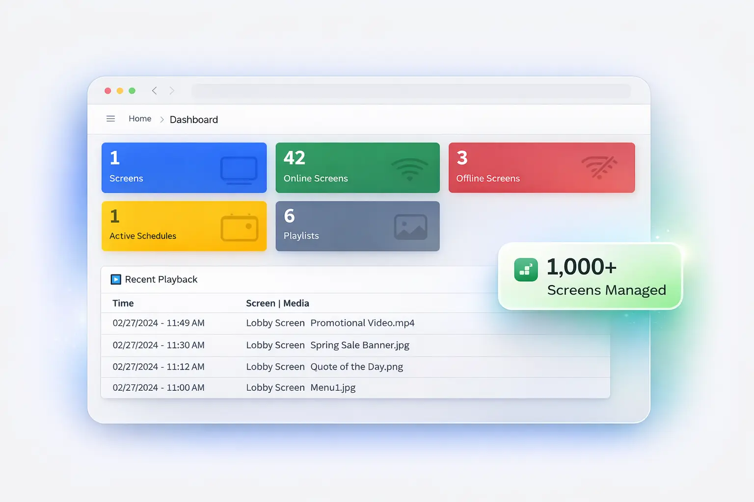 Everything you need to manage, update, and scale your digital screens effortlessly.
